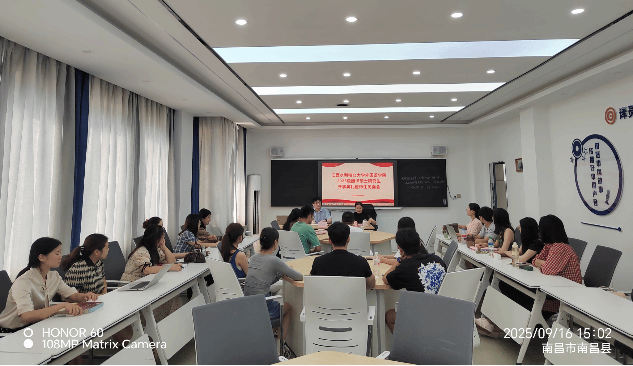 9月16日下午,威廉希尔足球官网在崇德楼A200隆重举行2025级翻译硕士研究生开学典礼暨新生与导师见面会。开学典礼由王晓兰副院长主持,院长肖永贺、全体研究生新生和导师参加了此次活动。肖永贺院长代表学院对2025级研究生新生的到来表示热烈欢迎,并对新生提出了要求和期待,希望他们在读研期间学会做人、学会做事、学会做学问,同时他还对学术诚信与师生协作提出明确要求,寄语新生恪守学术道德、共建良好师生关系。刘思逸代表新生发言,表达了对研究生学习生涯的憧憬。